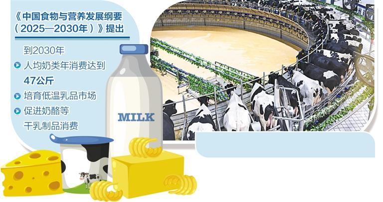 今年年初,农业农村部、国家卫生健康委、工业和信息化部3部门印发的《中国食物与营养发展纲要(2025—2030年)》提出,到2030年,人均奶类年消费达到47公斤,培育低温乳品市场,促进奶酪等干乳制品消费。当前,推动奶酪发展进入更高层次恰逢其时。