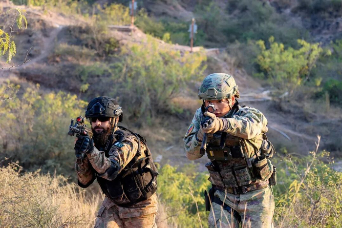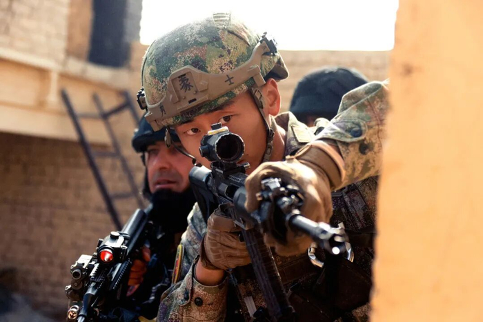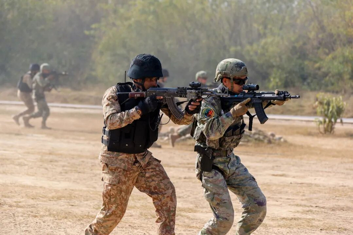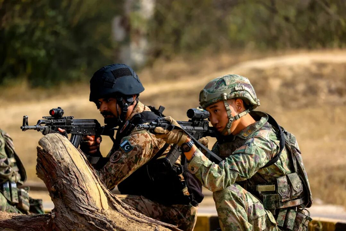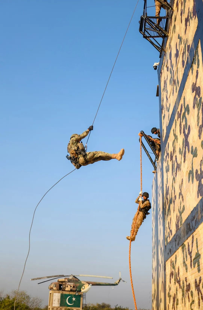 连日来,中巴“勇士-9”反恐联合演习正在巴基斯坦帕比国家反恐训练中心紧张进行当中,两军参演官兵按联演计划安排,展开多专业、多课目混编联训。