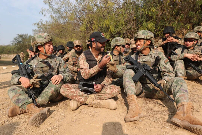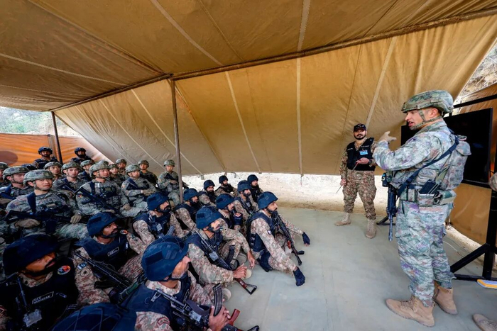 在巴基斯坦帕比国家反恐训练中心,中巴两军特战队员根据训练课目,混编为数个分队,以联合打击恐怖主义为背景,以联合反恐清剿打击行动为课题,采取混编联训方式共同完成装备操作、多种火器实弹射击、单兵反恐技能、反恐队组战术等课目训练。