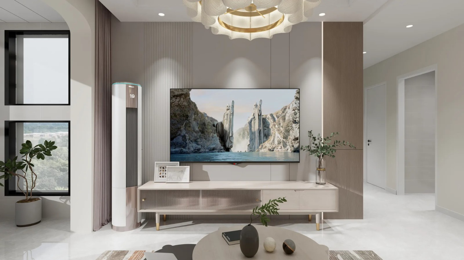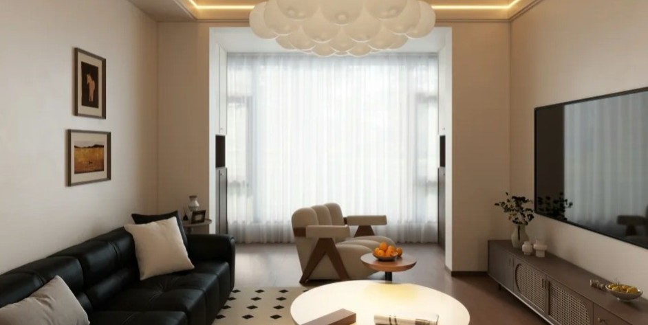 采用法式复古风格,以暖棕色与白色为主色调,营造出典雅浪漫的氛围。棕色皮质沙发质感十足,搭配复古玻璃茶几与艺术挂画,提升空间格调。法式吊灯与墙面线条设计,尽显复古韵味,大空间布局让客厅兼具会客与休闲的双重功能。